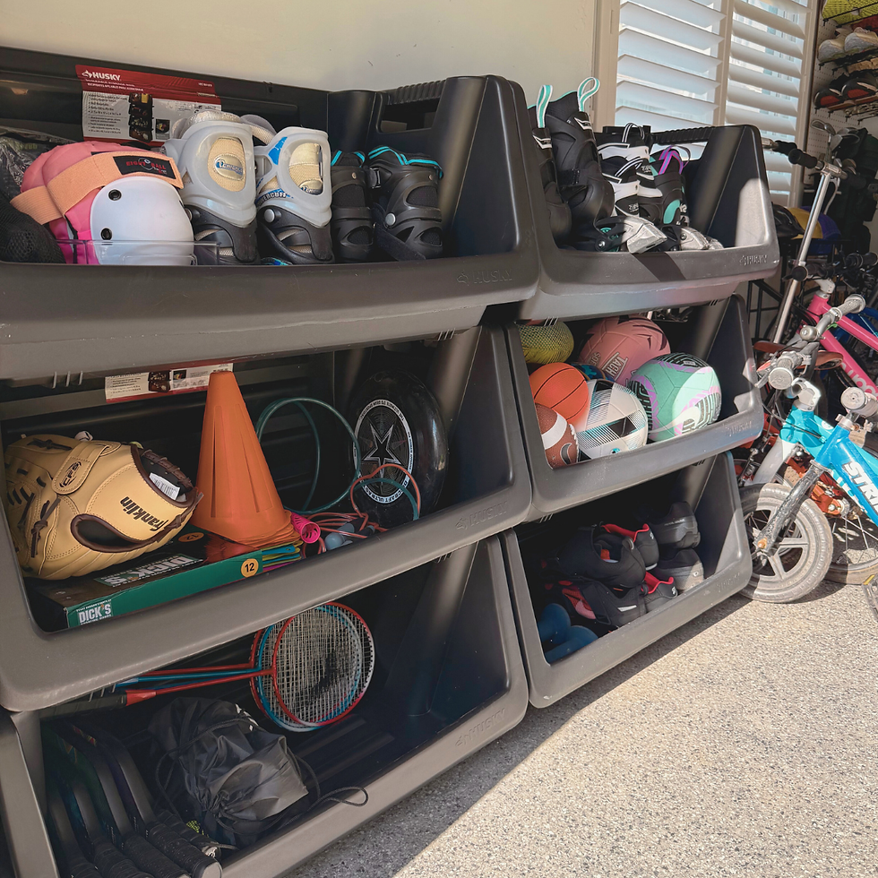 These are fabulous for so many categories, especially sports equipment & kids toys. Stackable and affordable, you can't go wrong.